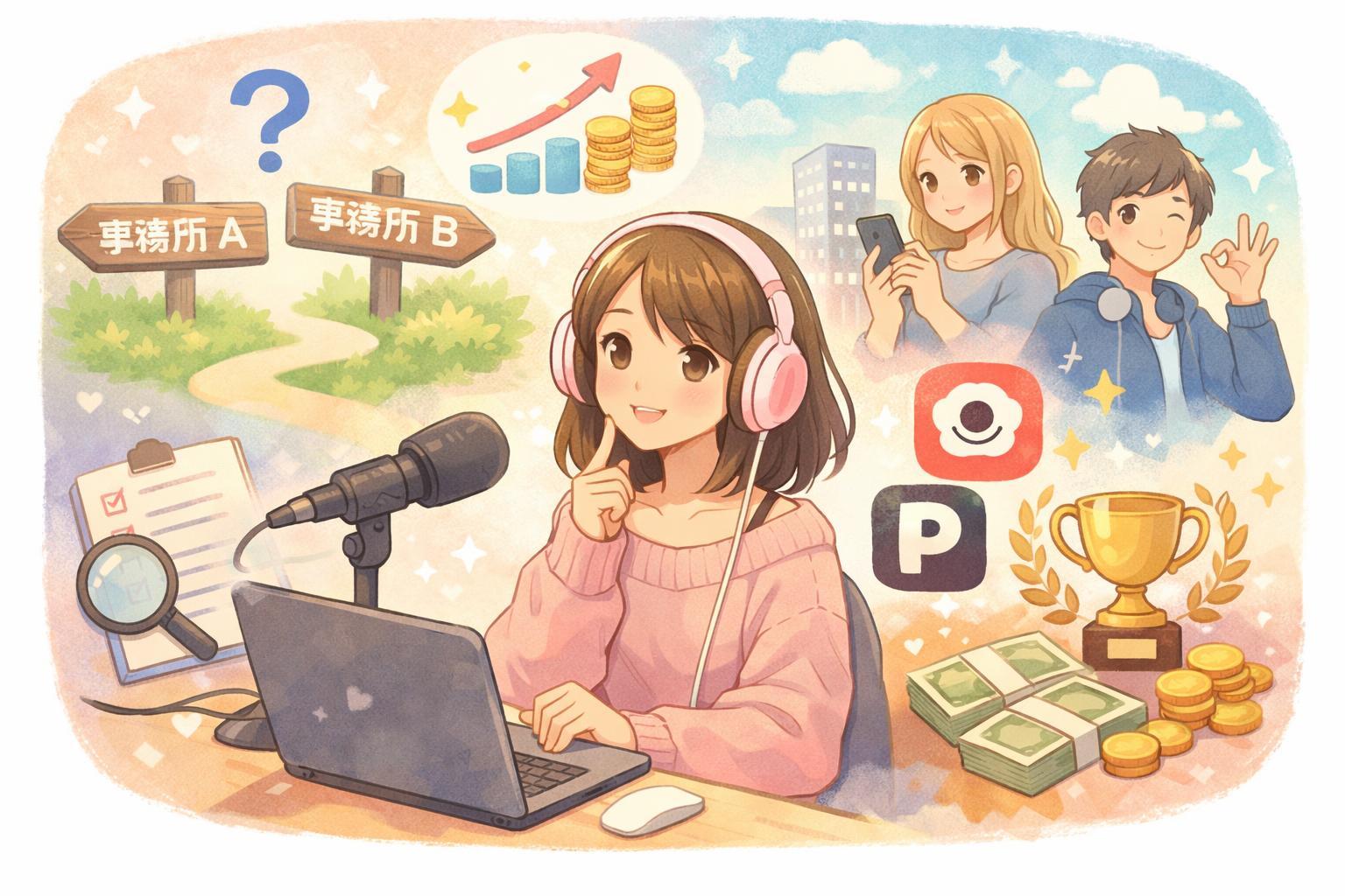 事務所選びで失敗しないためには、本記事で紹介した「サポート体制」「報酬還元率」「ノルマの有無」などの5つのポイントを必ず確認しましょう。Pocochaや17LIVEといった、自分が挑戦したいアプリに強みを持つ事務所を選ぶ視点も重要です。この記事を参考に、あなたの魅力を最大限に引き出してくれる事務所を見つけ、人気ライバーへの第一歩を踏み出してください。